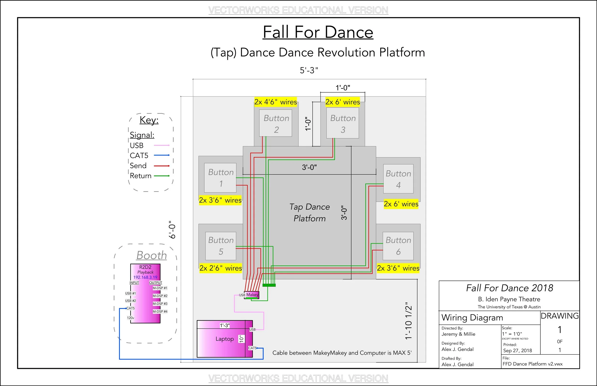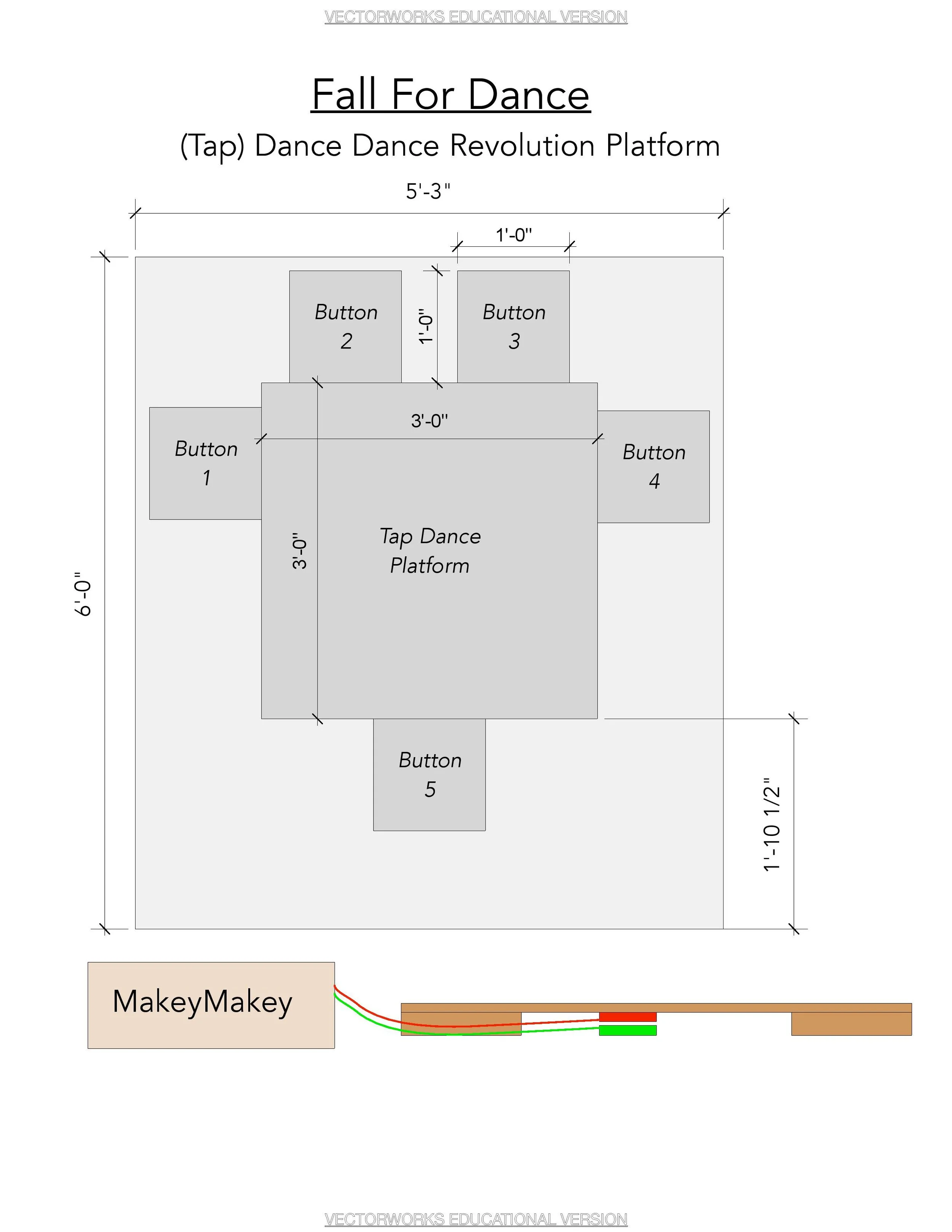 A Wiring Diagram of the dance platform and the associated buttons, makey makey, and computer.